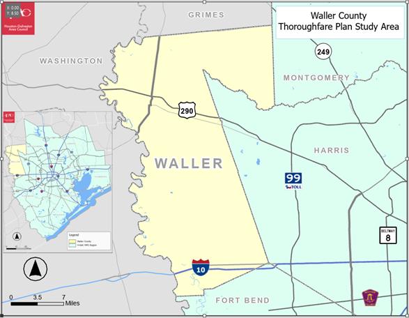 Houston-Galveston Area Council (H-GAC) is assisting Waller County with an update to its Thoroughfare Plan, originally adopted in 2019. This update will provide a coordinated framework for transportation improvements, support planned growth, enhance mobility, and strengthen regional connectivity.